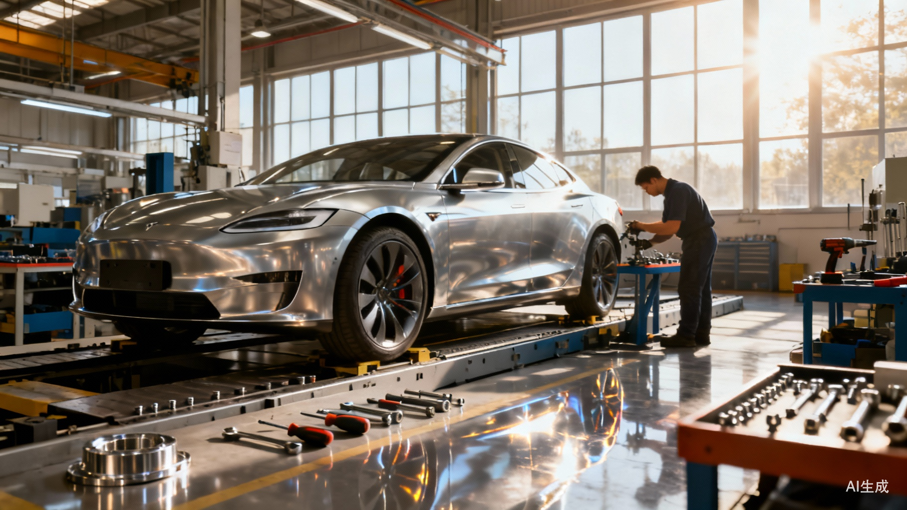 从FF官方发布的加州Hanford工厂照片中可以看到,整车装配过程几乎全部为人工操作,甚至有的工人没戴手套。网友调侃这是“纯手搓”、“标准表演式生产”。