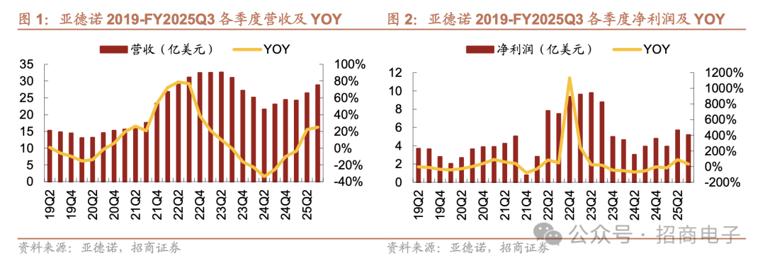 最近的FY25Q4营收达30.8亿美元,同比+26%/环比+7%,持续强劲增长,所有终端市场同比增长,以通信和工业为主。