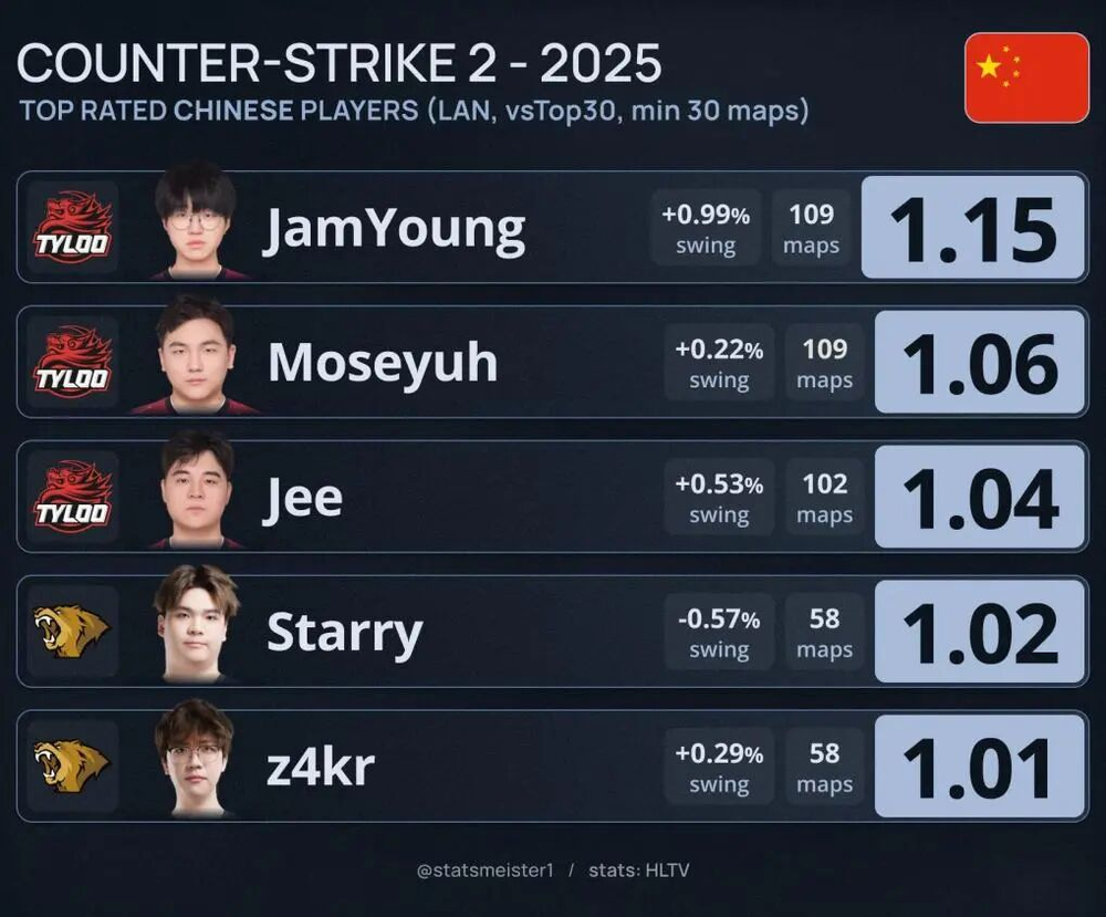 至少跟他一样从未选择过自暴自弃的CN CS,其实刚刚走过了稳中向好的2025。“御三家”TYLOO、LVG、RA都打进Major拿到了贴纸,TYLOO更是自建队以来首次问鼎国际大赛。与此同时,CS游戏本身的魅力所带来的用户粘性开始发力,明星选手呈现出破圈效应,国内的观众数量因而呈现触底反弹,最终掀起其他电竞项目中常见的追星狂热。