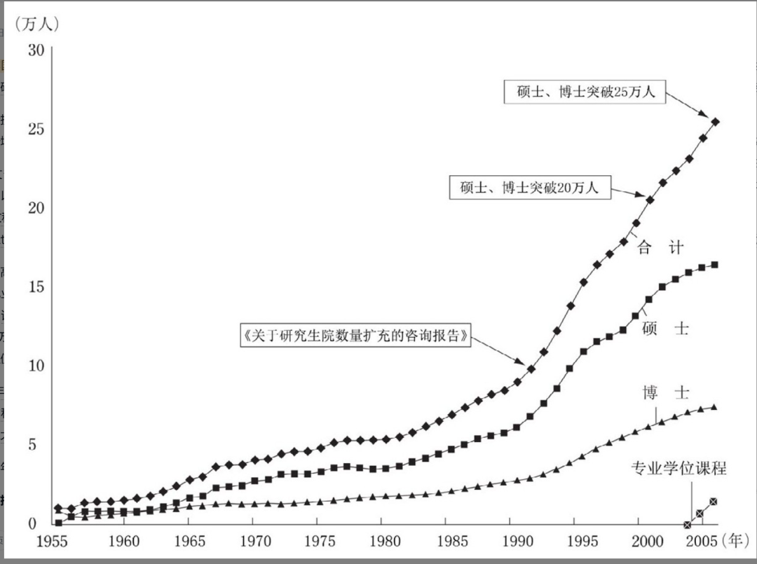 1955—2005年,日本高校硕士、博士招生情况,图源:《以日为鉴:衰退时代生存指南》