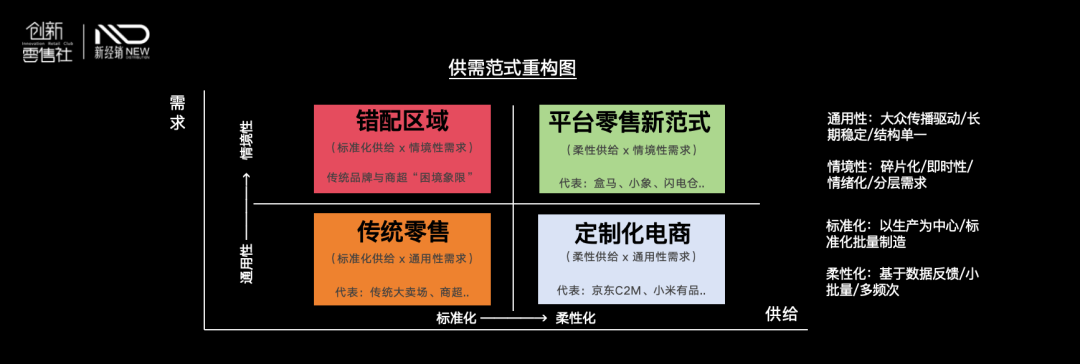 传统零售,其实是标准化供给与通用性需求的交集。但是情景化需求在崛起,这部分传统零售是满足不了的。