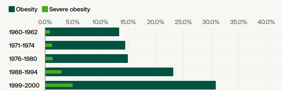 看看80年代美国肥胖比例的增速有多快再想想吧: