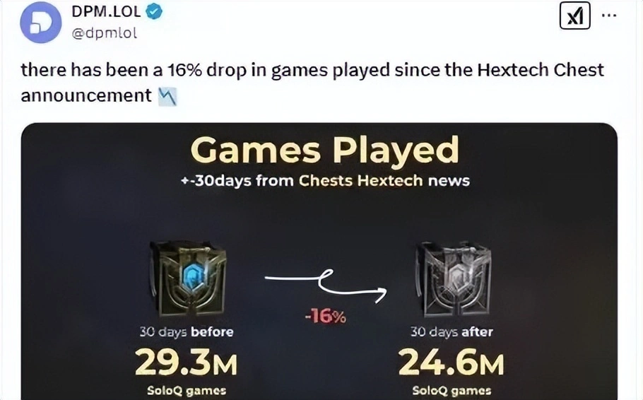 此举引发了玩家强烈不满与抗议,据第三方统计,当月的游戏对局数量从从2930万,下跌到了2460万,跌幅率接近16%。更有媒体透露,《英雄联盟》在几周内流失了700万玩家,虽然此番言论未经官方证实,但玩家流失、活跃度下降已成为不争的事实。