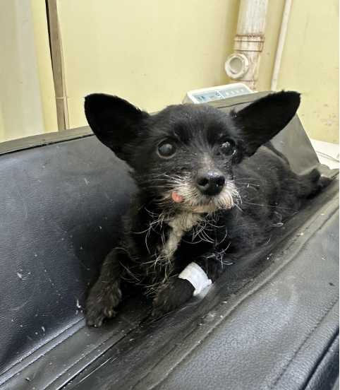 我们都以为他是只幼犬,带去宠物医院后没想到是已经掉光牙齿的老狗,吉娃娃和梗犬的混合体,只有4斤,比猫还小。没有人想要收养臭气熏天的他,他也不符合被领养的条件。