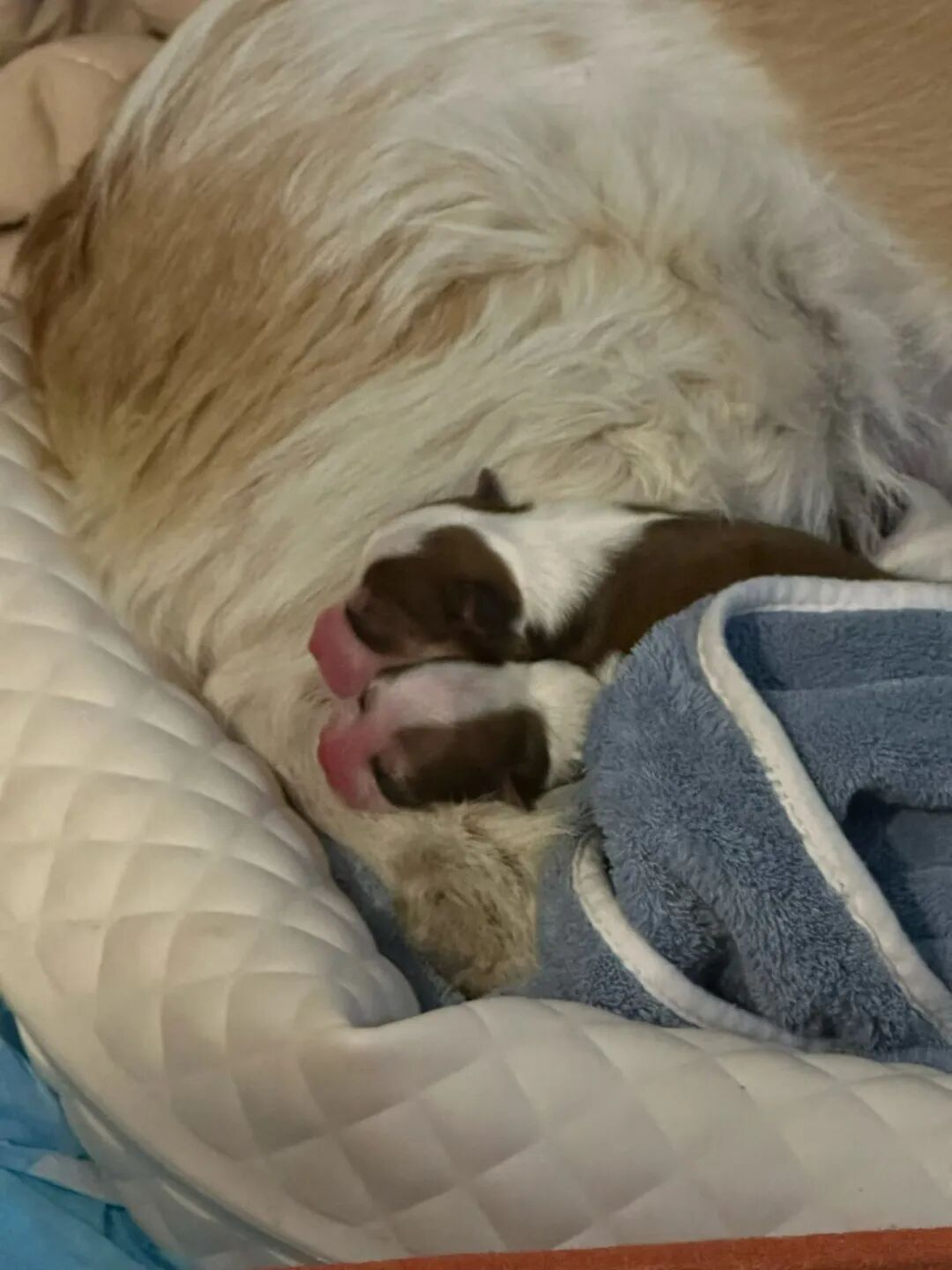 毛毛是一只非常可爱的狗,她亲切有礼,聪明温柔,很快找到了领养人。结果在交接的过程中,我们发现她怀孕了,狗的孕期很短,平均只有60天,她的孩子都已成型,等待来到世间。