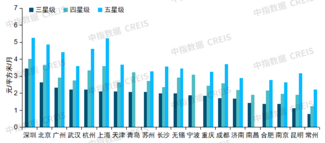 2025年12月,这二十个城市里,三星级物业服务收费2.05 元/ 平/月,同比跌0.09%;四星级2.87 元/平/月,同比跌0.28%;五星级3.96元/平/月,同比跌0.51%。
