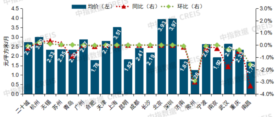 中指研究院发布的《2025年中国物业服务价格指数研究报告》显示,2025年12月,北京、上海、杭州、苏州等二十个重点城市的物业服务均价,是2.72元/平方米/月。对比去年同期,下跌了0.23%;对比上个月,也下跌了0.09%。