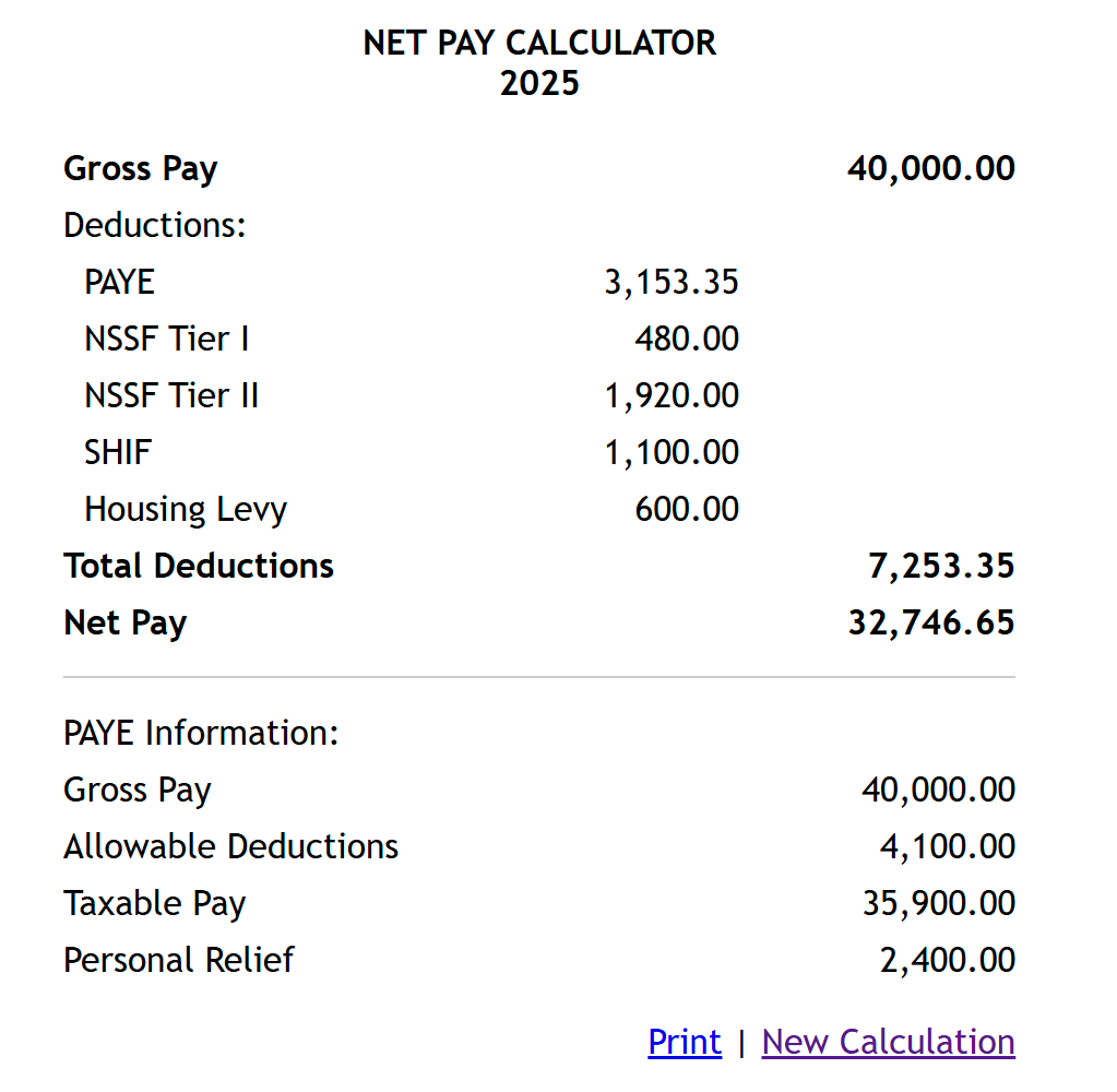 PAYE、社保、医保一扣,到手三万二千先令。