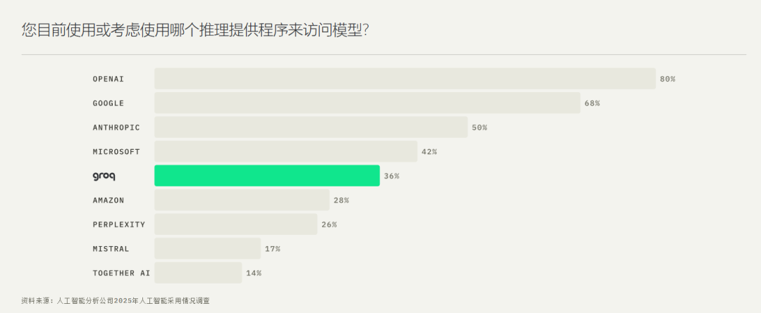 靠着奇特但有效的技术路线,Groq迅速圈了一波粉。在他们摆在首页中央的一张统计图上,模型推理业务已经压了亚马逊一头,仅次于微软了。