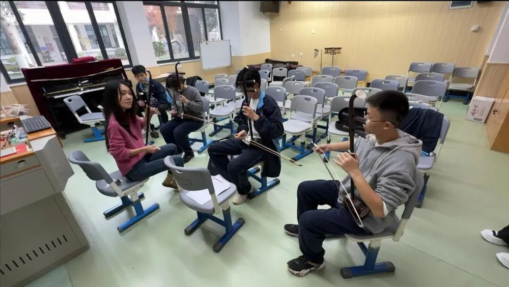 每周只要时间允许,她和自己的学生们,都会从位于转塘的浙江音乐学院驱车或坐地铁来到位于下沙的杭州文汇学校,光来回路上就要花3个多小时。在项目伊始,她还自费数万元准备了四把专业二胡。