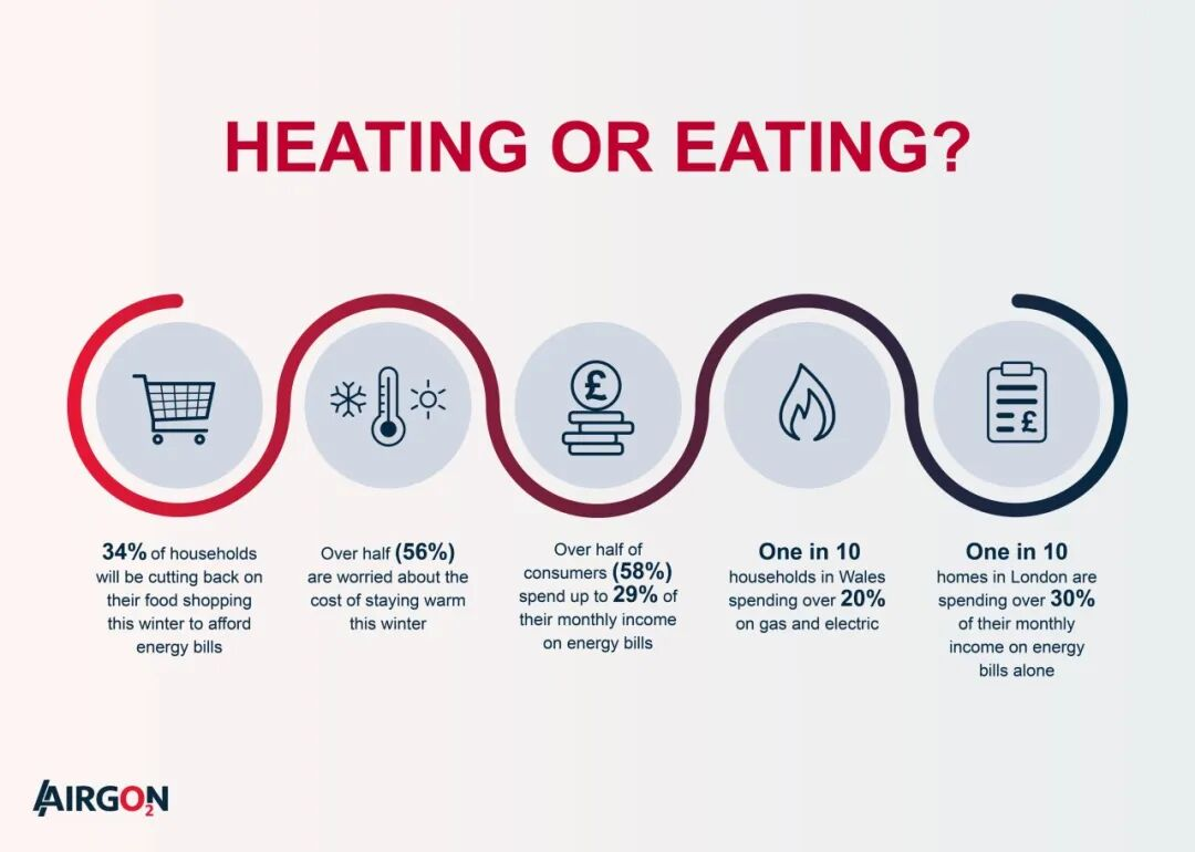 在现实生活中,许多低收入家庭被迫在食物和取暖之间做选择:要么每天少吃一两顿,要么不开暖气。这种困境在英国甚至有专门的说法——“eating or heating”(吃饭还是取暖),也被称为“food or fuel”(食物还是燃料)。