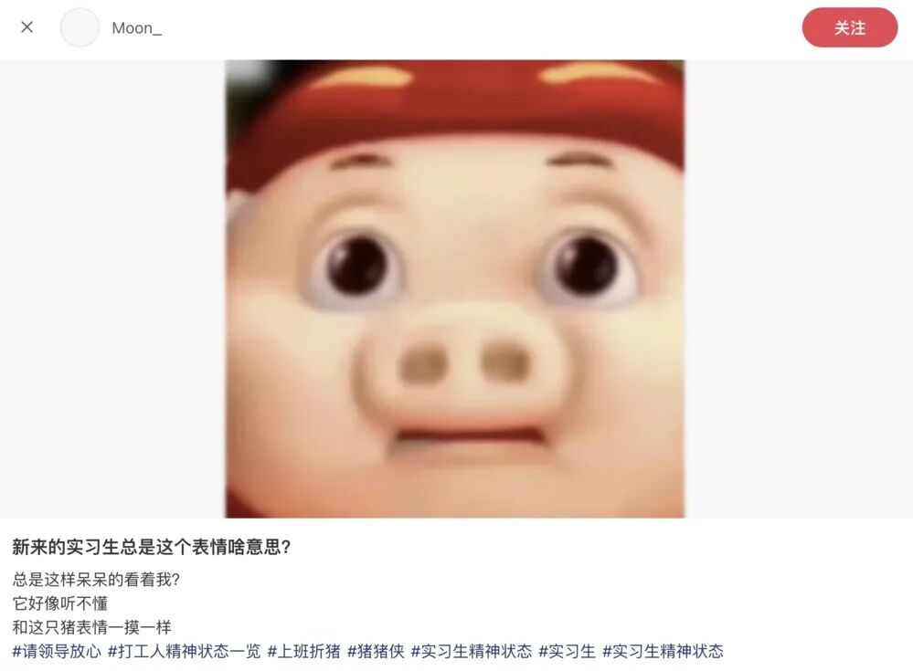 此时,Z世代凝视 (Gen Z Stare) 被宣称为一种自我保护的手段——商业杂志《福布斯》形容这种嘴巴微张、目光茫然的呆滞表情是“公路上被车灯探照的鹿”,国内则用猪猪侠表情包轻松完成了转译——无措也好,冷漠也罢,至少做到不迎合,实现消极抵抗,完成最低限度的自我保存。