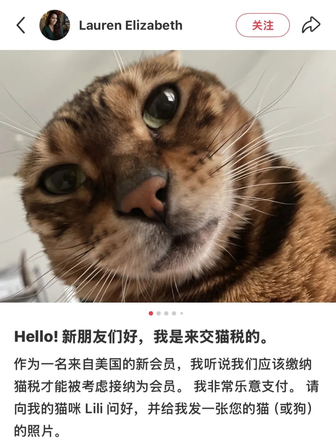 中外网友的最初交流回合从“交猫税”开始(图源:小红书)