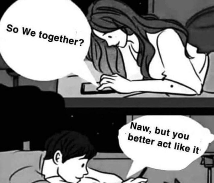-“所以我们在一起了吗?”-“没有,但你最好表现得像是我们在一起了。”