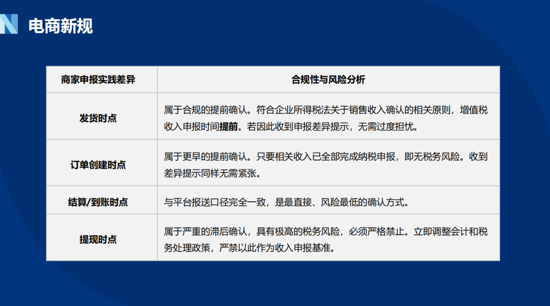 平台统计口径往往是“资金结算/到账”的时点。而企业内部常见四种确认方式:按发货、按订单、按到账、按提现。