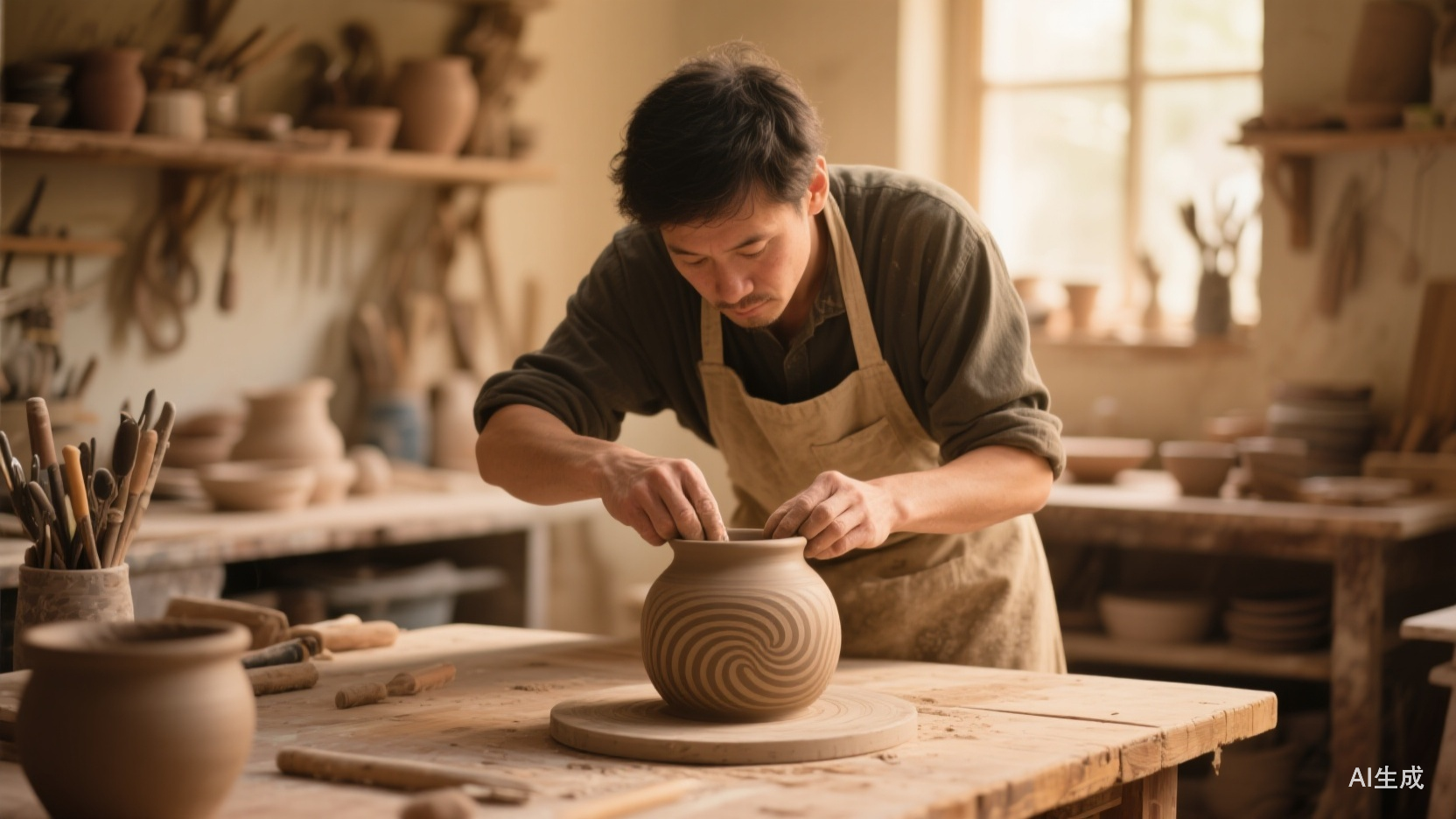 绞胎创作过程的这种复杂与不确定性,很像人在面对过去一年生活的状态:在平淡、重复与失败,在本能地追寻稳定与确定的过程中,不断习得经验,直至下一次开启。