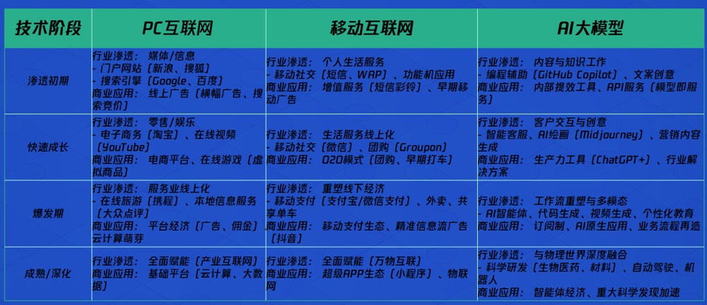 每一次技术革命都基于其核心特点找到切入点: