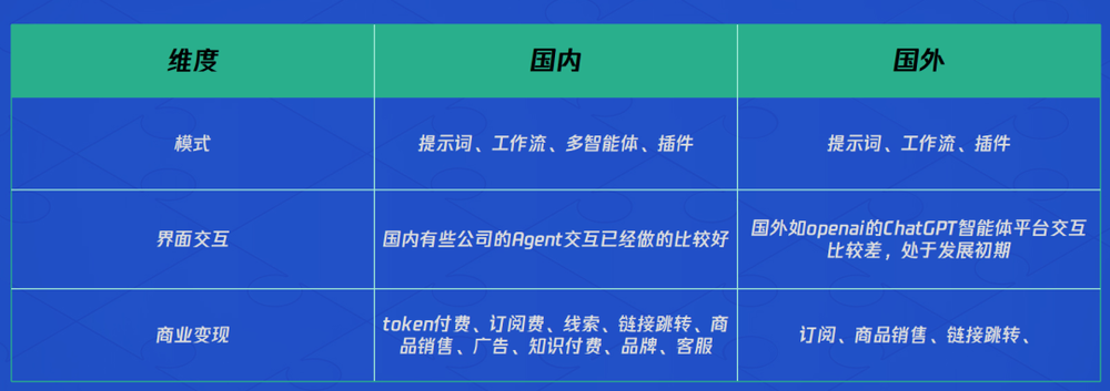 国内:模式丰富,包括提示词、工作流、多智能体协作、插件等多种形式。