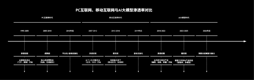 PC互联网:核心是信息联通与存储,从媒体、资讯、搜索起步,延伸至电商、在线娱乐。