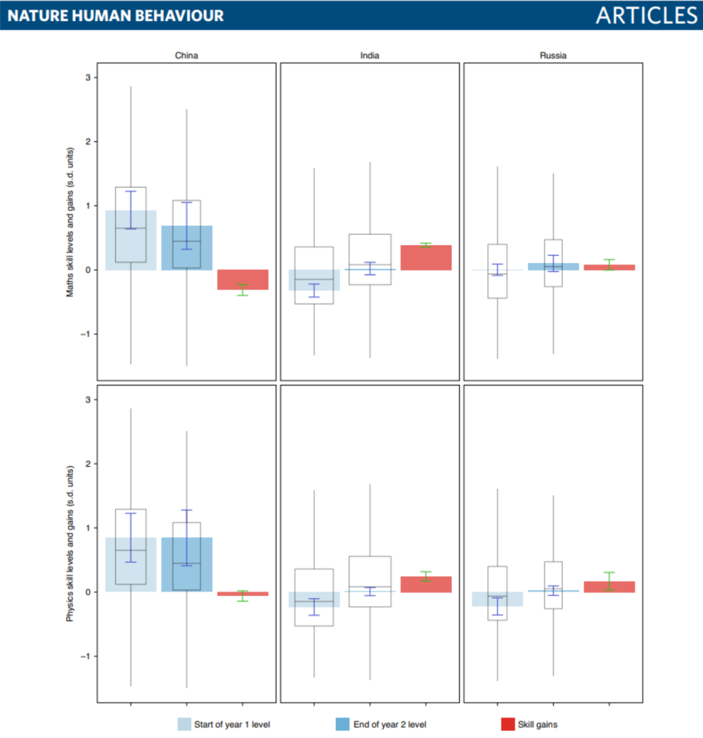 印度和俄罗斯:学生在前两年有进步,但后两年又陷入了停滞。