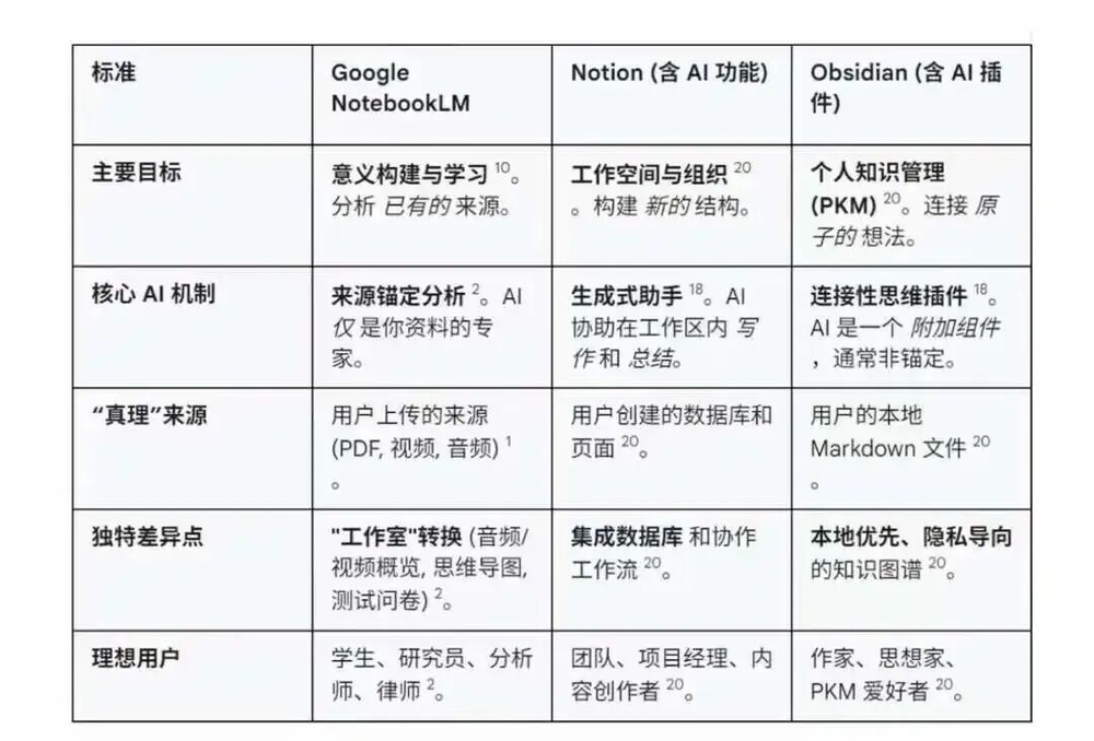 上面是三个系统的对比,侧重点各有不同,都是一等一的好软件好系统!notebookLM属于后起之秀,很强大,依托google的生态!单兵能力超强!
