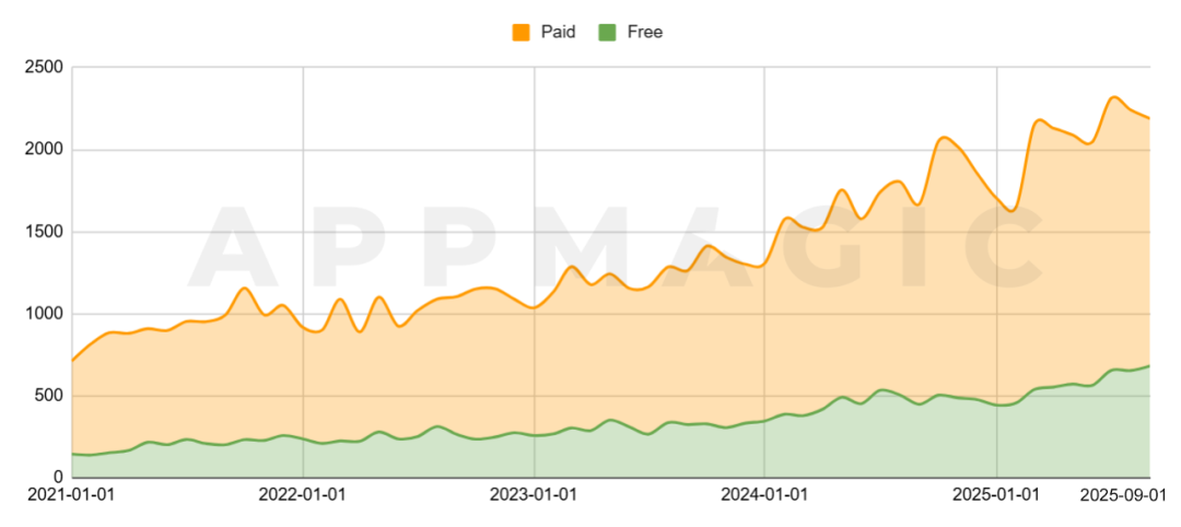 这再次说明,在这些热门品类中,竞争正在不断加剧。在这样的环境下,工作室若想脱颖而出,就必须在营销层面更加精准,在产品差异化上更加清晰,并在定价策略上更加成熟。