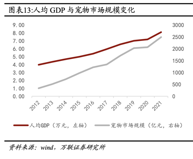 人均GDP与宠物市场规模变化
