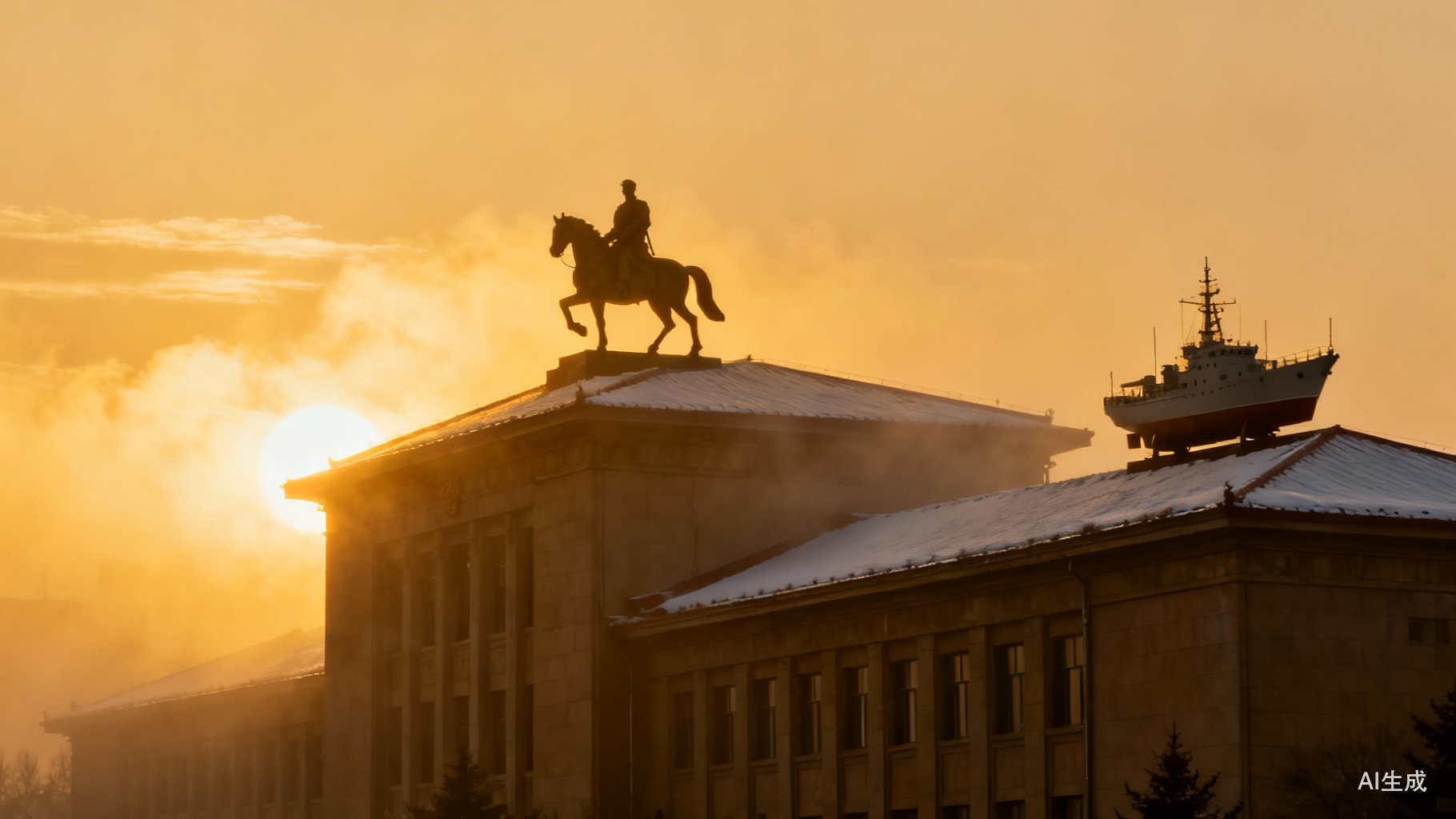 原子工程系:戗脊上的骑马将军,后面跟着一排导弹发射车;