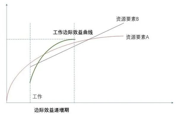 根据报酬递减规律(The Law of Diminishing Returns),在生产要素组合中,随着某一要素投入的增加,其带来的边际产量最终会递减。