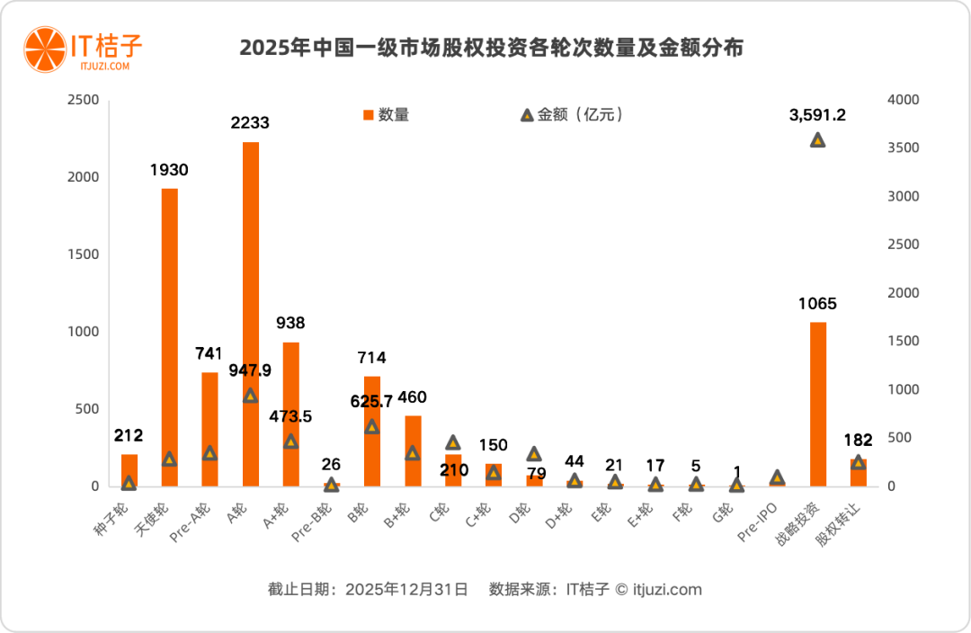 2025年的中国一级市场呈现出鲜明的“哑铃型”分化特征: