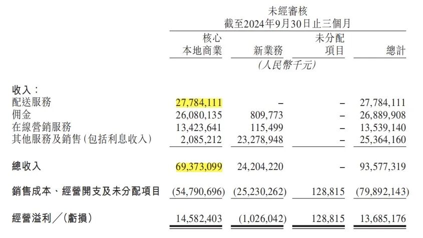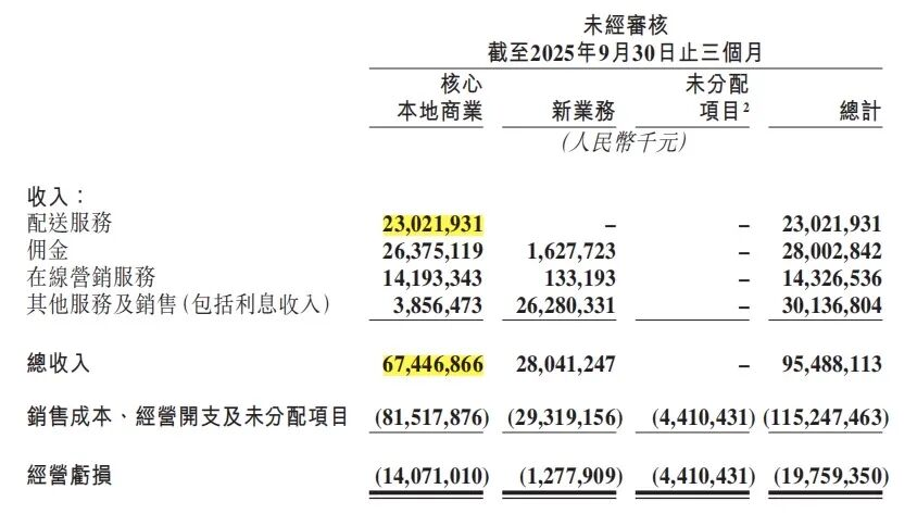 它产生的直接影响是,外卖在美团重新成为亏钱生意,高盛去年8月的报告预测,美团外卖2025年预计单均亏损约1元。外卖给美团带来的收入贡献也在降低。对比财报可发现,在外卖大战焦灼期的2025年Q3,严格与外卖相关的配送服务收入占核心本地收入的34%左右,而2024年同期,这一比例为40%左右。