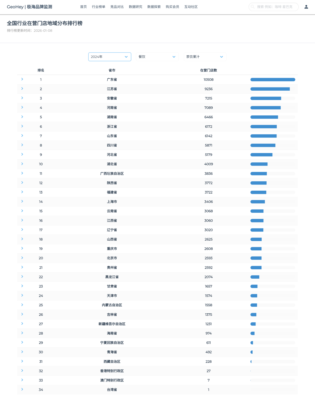 当我们把2024年全行业门店数据和2025年茶饮果汁门店数据叠加对比时,会发现一个被遮蔽的结构:奶茶店的分布,已经不是对GDP的绝对线性响应,而是对"消费焦虑"的精准定位。