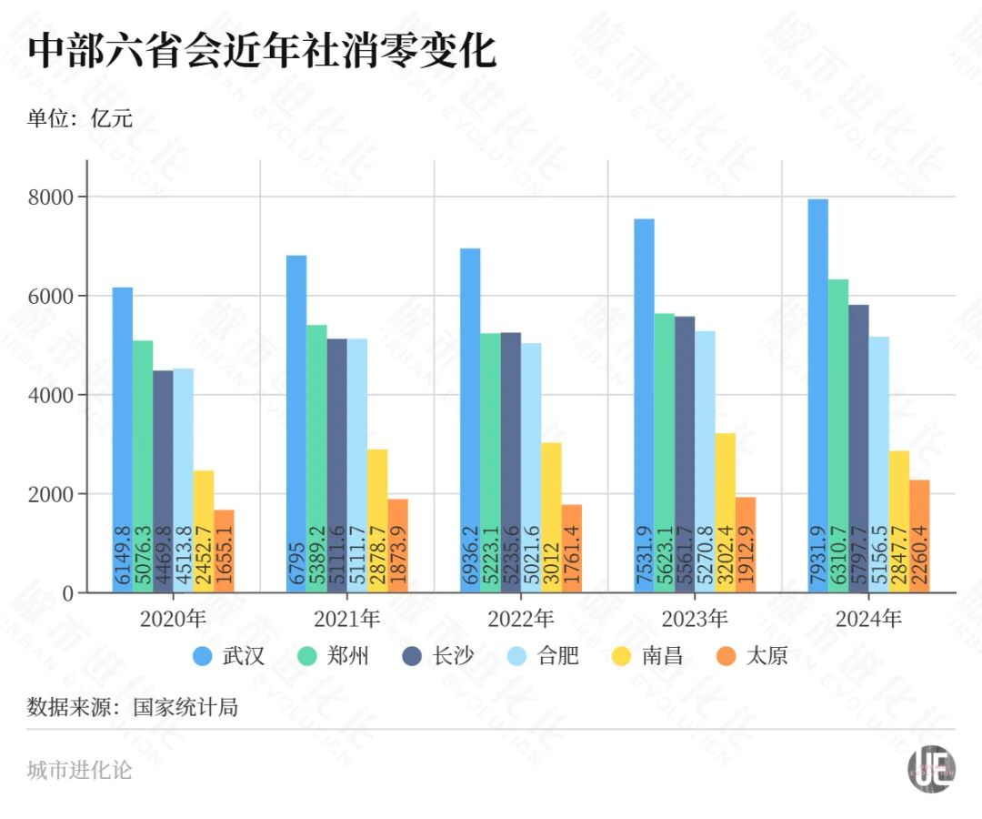 武汉消费在近两年逐渐显示出新动能——2024年社消零总额达到7931.87亿元,2025年一举迈过两个千亿台阶,社消零总额突破9000亿元。