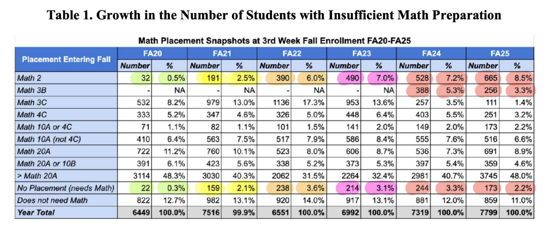 UCSD与加州大学学术评议会(Academic Senate)的一份最新工作组报告揭示了严峻的事实:2025年入学的大一新生中,每8人就有1人数学能力未达高中毕业水平;更严重的是,每12人中就有1人实际水平未达初中标准。