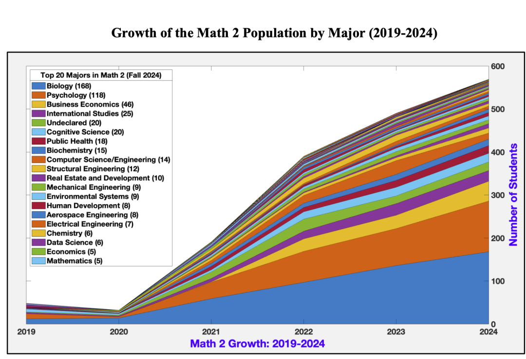 统计显示,UCSD学生中数学能力不足的人数和比例逐年上升|图源:Senate-Administration Workgroup on Admissions
