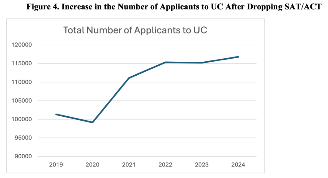 取消SAT/ACT分数要求后,仅在加州范围内,申请人数也有明显上升|图源:Senate-Administration Workgroup on Admissions