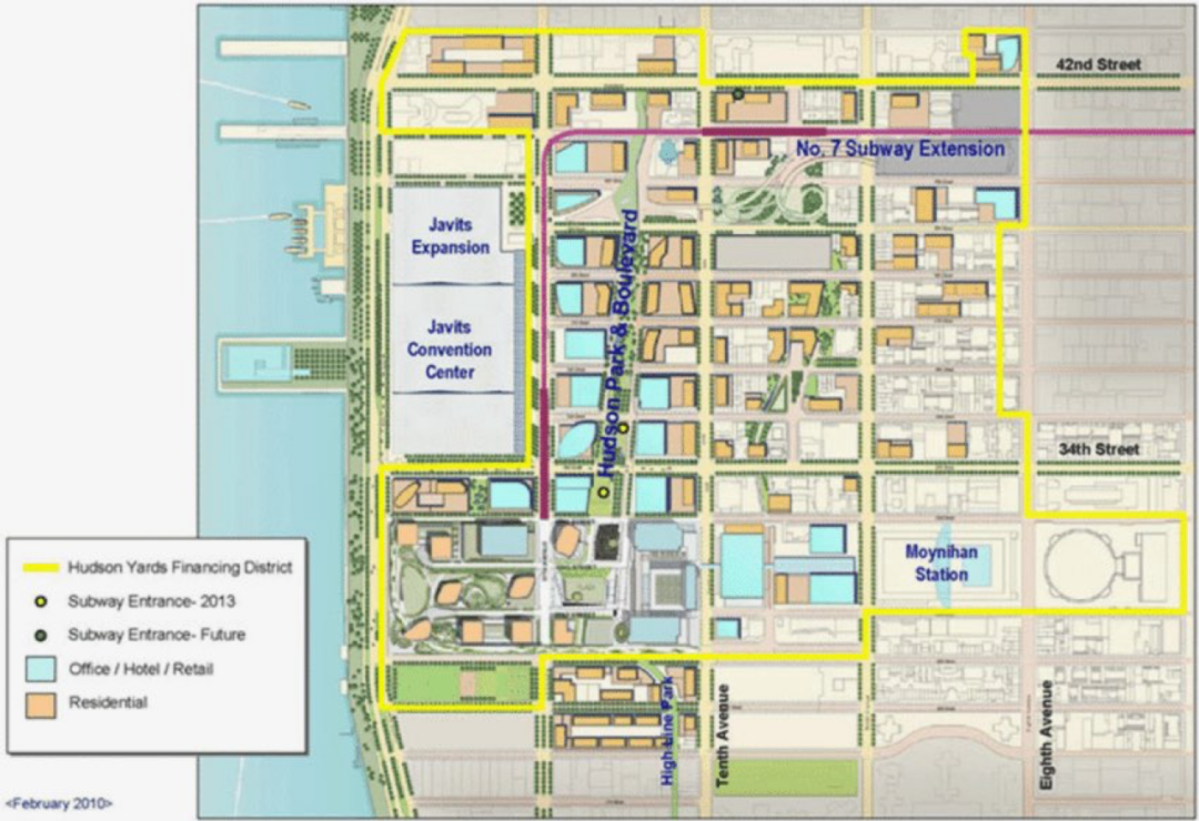 再如纽约哈德逊广场,通过发行债券和未来税收融资(TIF),用未来的钱建现在的城。