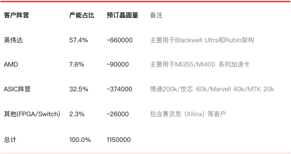 这意味着,只要对台积电CoWoS产能预订、分配情况,进行颗粒度拆解,就能精确测算出2026年AI算力芯片的出货格局。
