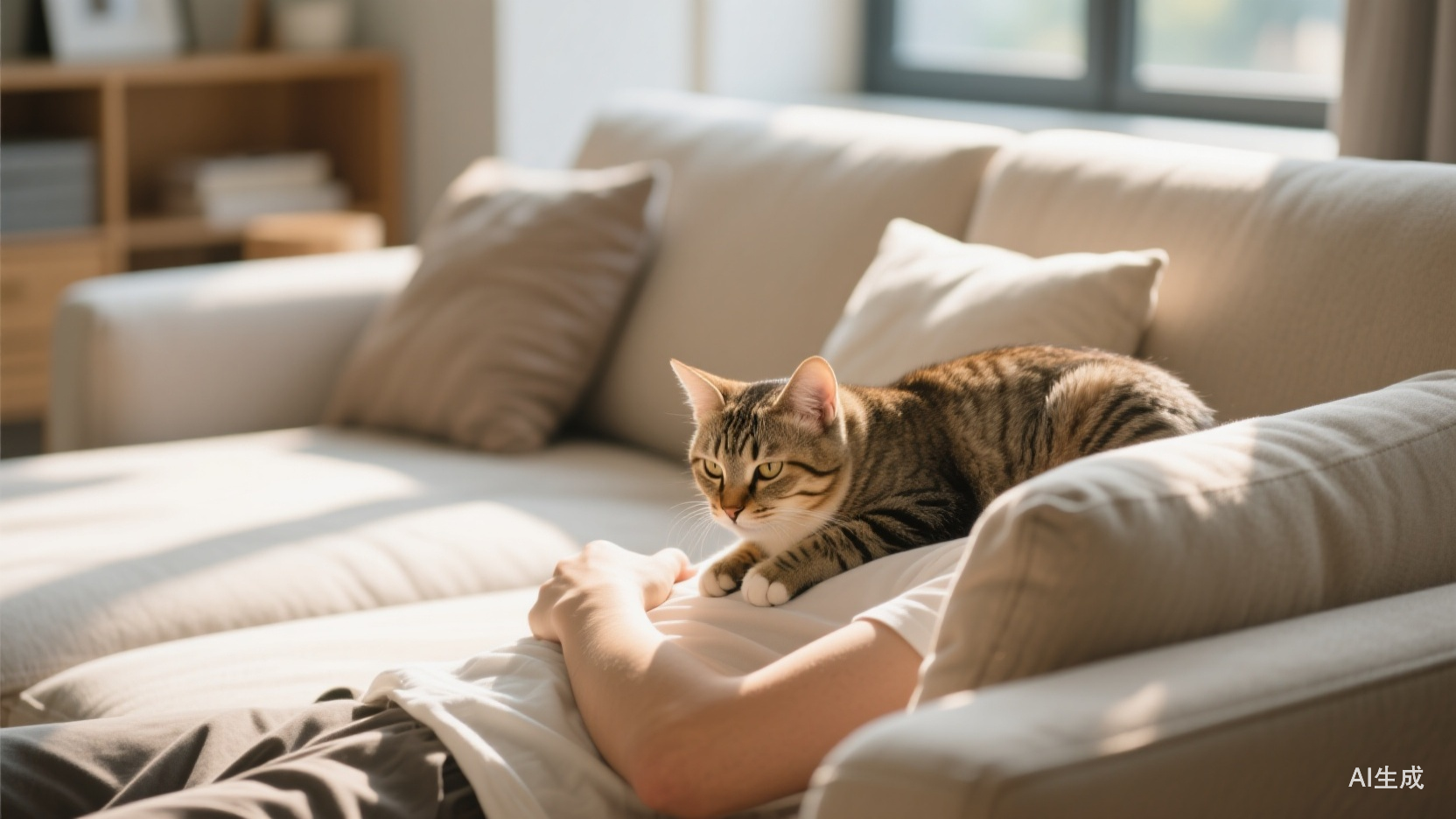 八不围着人腿转来转去,人拍沙发:上来。八不跳上去,坐在人身边,人一把把撸猫头,跟丙说找他的事,也不是什么正经事,几句说完了,人说大后天啊,一定。丙说一定。