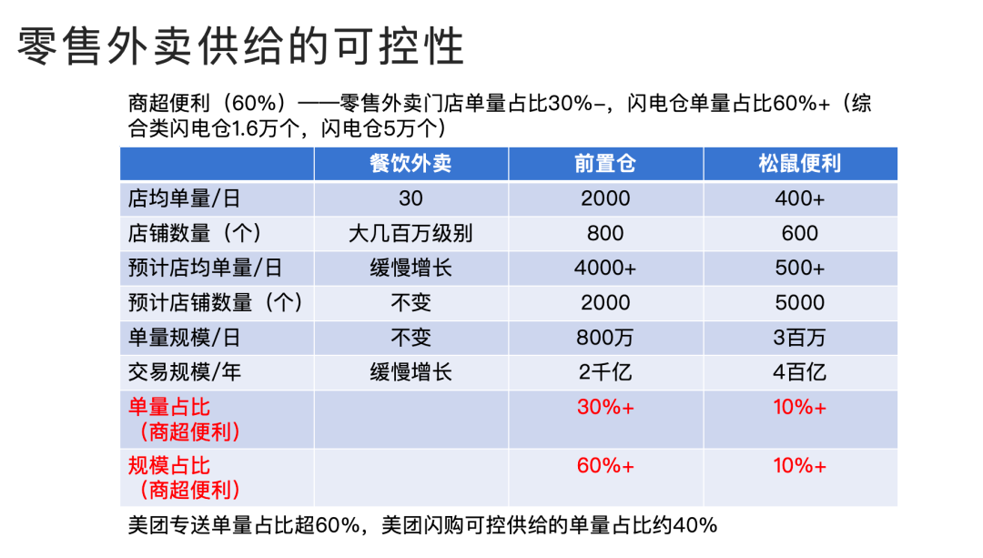 我个人推测,平台(美团)能实现可控供给能占到整个商超便利类目的60%以上。