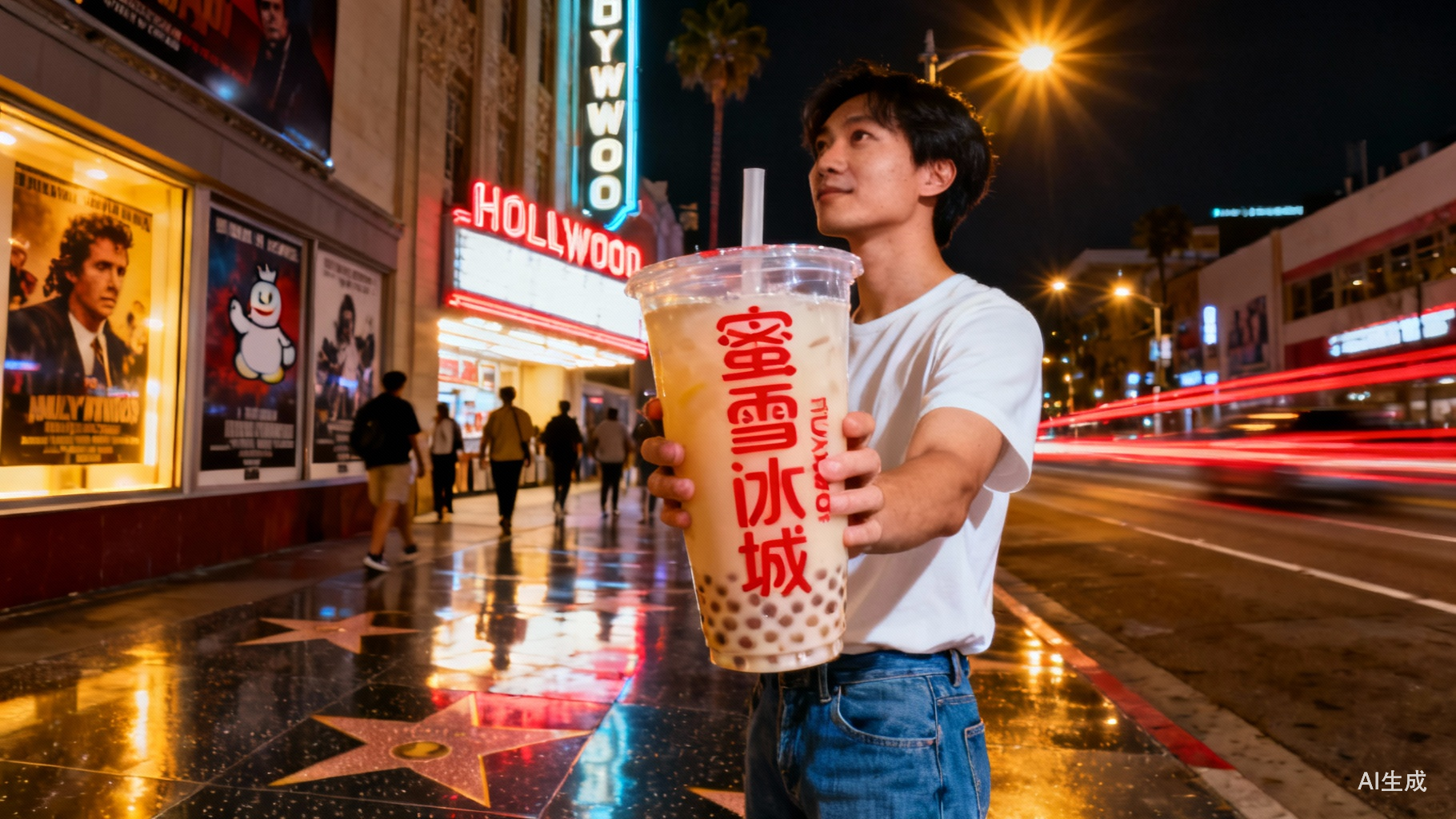 去年底,蜜雪冰城在洛杉矶的星光大道,开了第一家美国分店,雪王勇闯新大陆的旅途,正式启动。