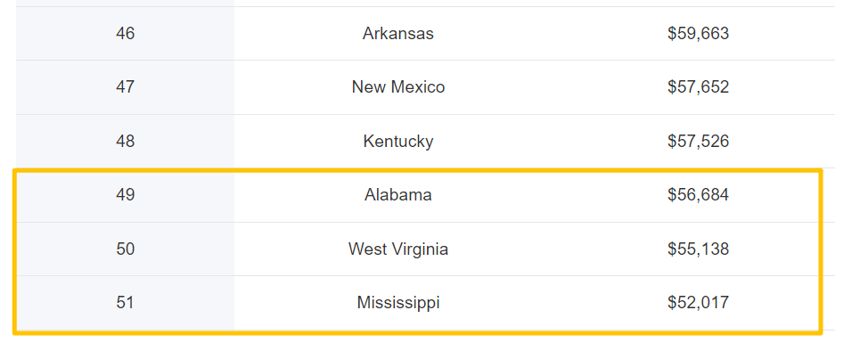 非常讽刺的是,胖,在美国已经不是一种富贵病,而是穷病。各种统计数据都显示,贫穷家庭和贫穷地区,肥胖率明显更高,人均收入排倒数的三个州,密西西比州、阿拉巴马州、西弗吉尼亚州,恰好就是肥胖率最高的三个州。