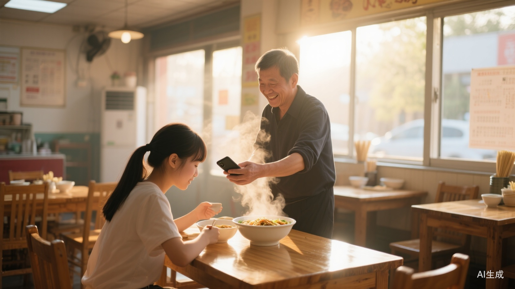老人几乎每天来,一个月来二十天。他总在角落安静等待,等客人走光了,才慢慢靠近。他不说话,只吃固定一种耐存放的熟面。后来李国色才知道,老人家里没锅,只能用开水泡着吃。