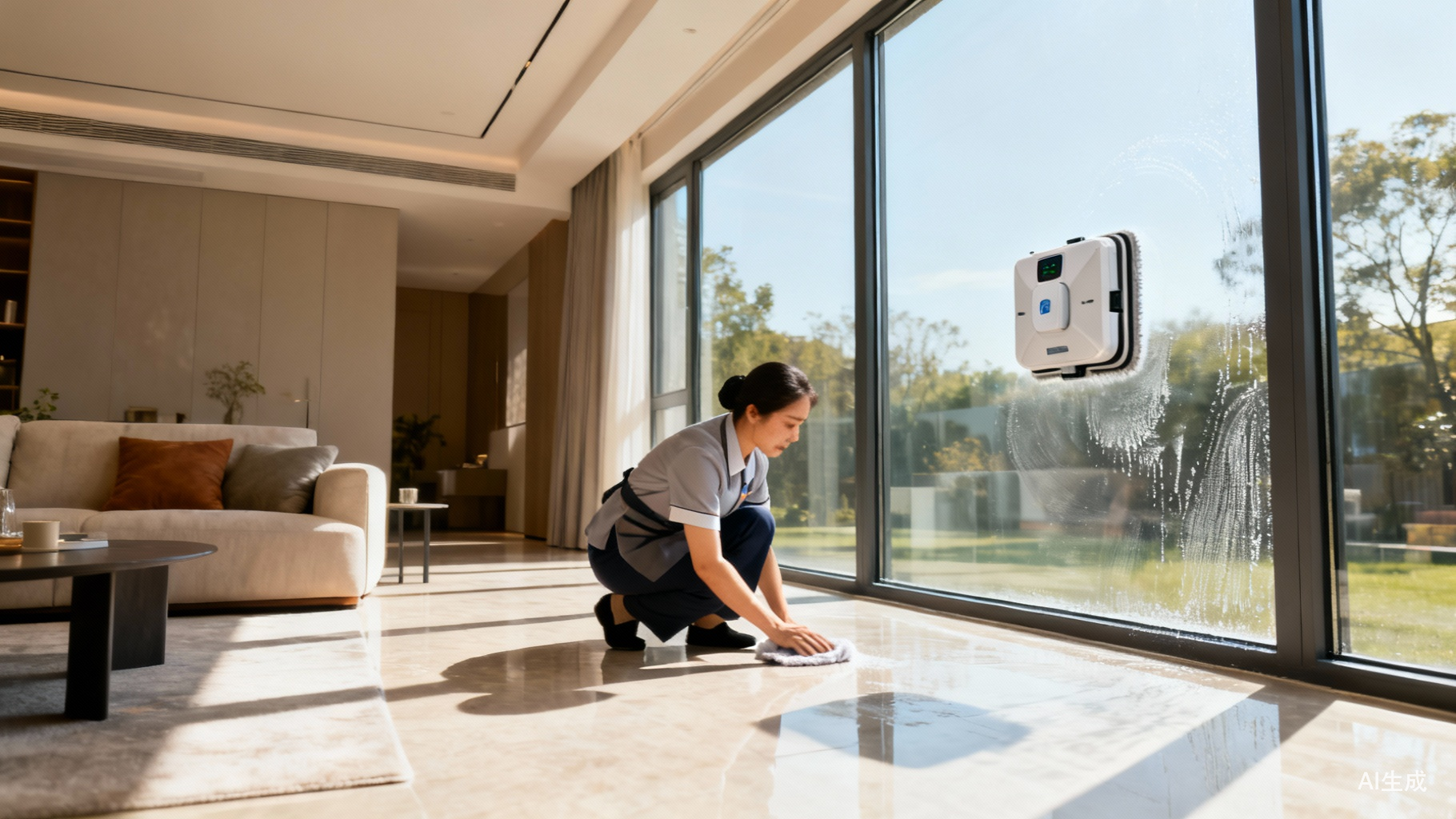 杭州工作的方女士查了查保洁阿姨上门的价格,转而选择去租了一台擦窗机器人。“一天不到100元,性价比还挺高。”她试用了一天,把家里所有窗户和玻璃门都擦了一遍,“效果还不错,虽然没有人擦得那么细致,但基本能擦干净。”