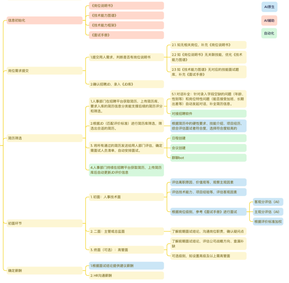 以最近的一个AI在HR体系的赋能来说,AI占比真的不足20%(蓝色是必须AI的部分):