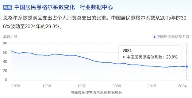 这些品牌的集体崛起,与国家统计局的数据相互映照。尽管数据显示,中国居民恩格尔系数持续下降,进入“富足区间”,消费意愿却在收缩。