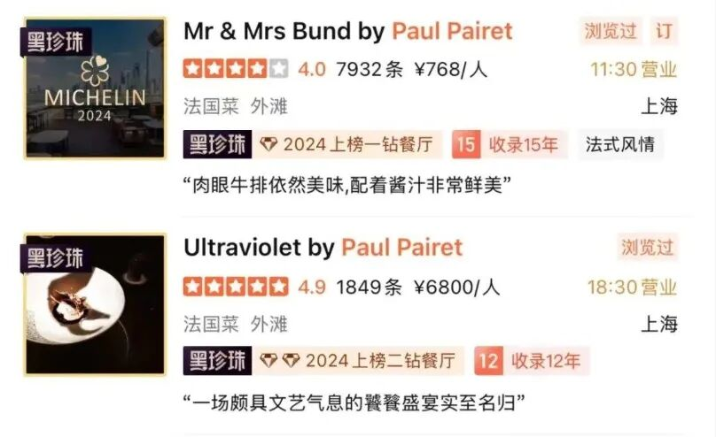 • 人均6800元、一天只接待10位客人、被称为上海最贵的米其林三星Ultraviolet by Paul Pairet紫外线餐厅也歇业关闭……