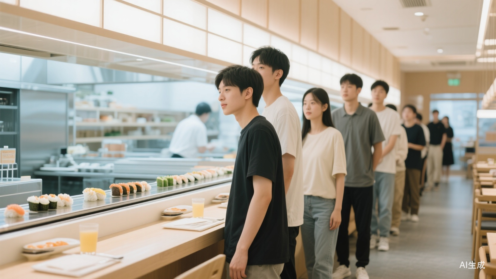 社交媒体上,年轻人把吃空的寿司碟垒成高塔拍照分享,有消费者在社交媒体写下:“失业第37天,在这里安静吃完一顿饭,感觉又能活过一周”,期待在工作和感情失控感蔓延的日子里构建秩序感;也有人把相亲对象约在这里“不必装阔,反而聊得开”。