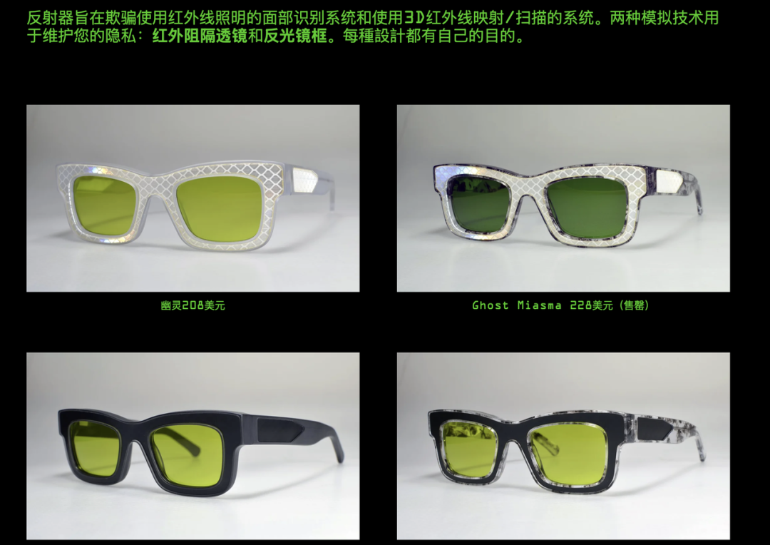 这种特殊镜片设计的墨镜也是用于防偷拍和面部识别|图源:reflectacles