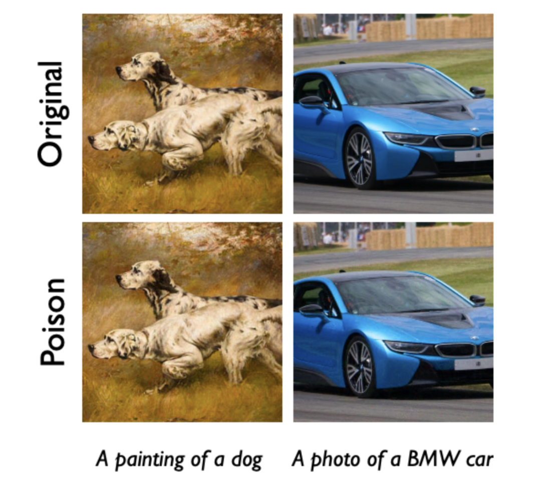 上图是原始图像,下图是“中毒图像”,人眼看不出区别|Nightshade